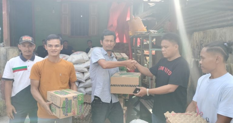 Wakil Bupati Padang Lawas Ahmad Zarnawi Pasaribu beserra Pengurus Yayasan Islah Bina Ummat menyerahkan bantuan al qur’an sebanyak 200 buah kepada Pengurus Masjid Desa Batang Bulu Baru Kecamatan Barumun Selatan Kabupaten Padang Lawas Prov Sumatera Utara Jumat (16/4) siang.