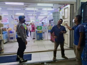 Kemudian dilokasi Alfamidi dan Indomart,team juga melakukan himbauan kepada masyarakat agar jangan berkerumuan dan disiplin pakai masker saat beraktivitas diluar rumah.