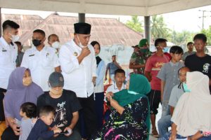 Bupati Mandailing Natal H.M.Ja’far Suheri Nasution saat memantau pelaksanaan vaksinasi di Kelurahan Kota Siantar, terkihat bupati berdialog langsung dengan warga
