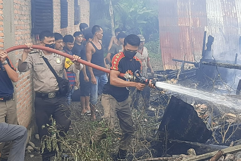 “Api dengan cepat menghanguskan rumah serta seluruh isinya ikut terbakar,kerugian ditaksir mencapai RP 150 juta,” kata Halomoan dan Fahri disela kegiatan pemadaman api dilokasi kebakaran.