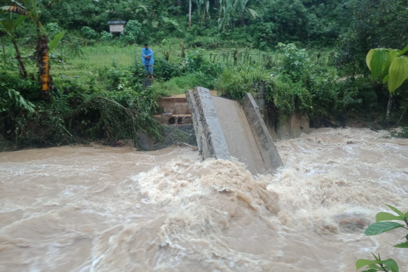 Jembatan Desa Lubuk Samboa di Kecamatan Batang Natal, Kabuoaten Mandailing Natal putus total Kibat dihantam deras nya arus sungai parlampungan