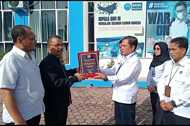 Gerakan Anti Narkotika Nasional (Granat) Kabupaten Mandailing Natal memberikan penghargaan atas prestasi Badan Narkotika Nasional Kabupaten (BNNK) dalam memusnahkan 33 Hektar ladang ganja sepanjang tahun 2021 di Madina.