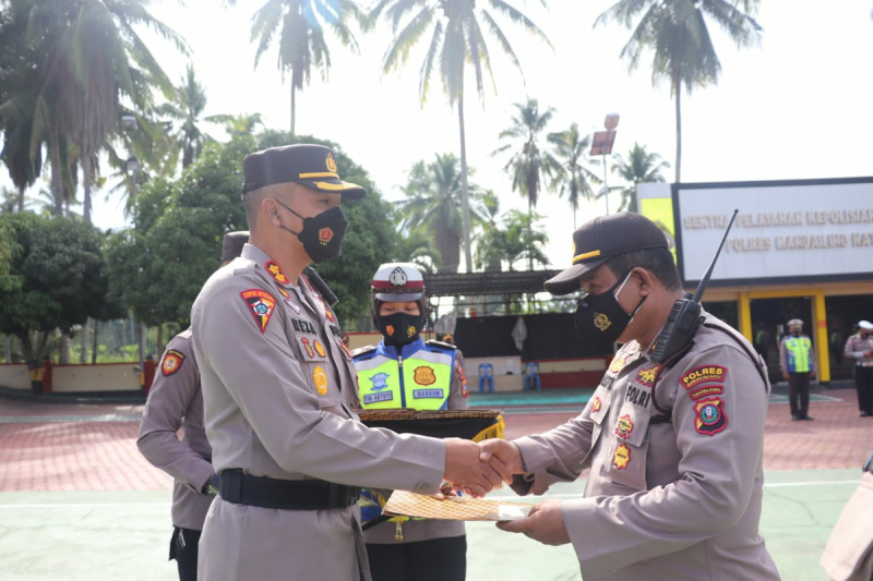 Penyerahan piagam penghargaan dilaksanakan usai upacara apel pagi di Mako Polres Madina, Senin (24/1/22) pagi.