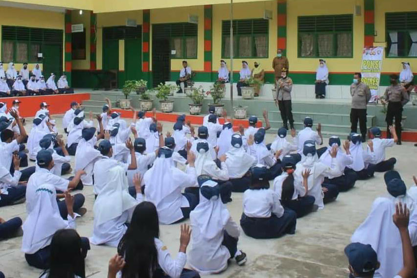Kapolres Padangsidempuan AKBP Juliani Prihartini, SIK, MH, melaksanakan Program Polisi Sambang Sekolah, yang berlangsung di SMPN 3 Padang Sidempuan Jln. Tonga Kelurahan Wek I Kecamatan Psp Utara dalam dalam Rangka menciptakan Harkamtibmas di Kota Padangsidimpuan, Senin (31/01/2022).