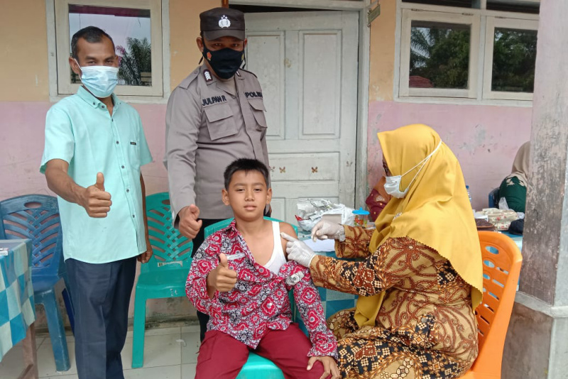 “Sejauh ini anak yang di vaksinasi tidak ada kendala kesehatan, alhamdulillah aman” ucap Arpian saat memonitor kegiatan vaksinasi di Sekolahnya tersebut