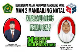 Anisah Fitri, Siswa Madrasah Aliyah Negeri 2 Mandailing Natal (Madina) meraih juara Kompetisi Sains Nasional (KSN) 2022 Tingkat Kabupaten yang dilaksanakan pada tanggal 24 Mei 2022 lalu dan pengumuman hasil kompetisi pada Selasa (14 Juni 2022) kemarin.