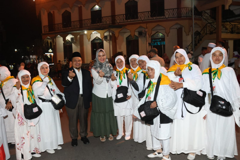 Bupati Tapanuli Selatan (Tapsel) Dolly Pasaribu dan Ketua TP PKK Ny Rosalina Dolly Pasaribu menghadiri pelepasan keberangkatan 194 Jemaah Calon Haji (JCH) 1444 H/2023 M asal Tapanuli Selatan di Aula Asrama Haji Medan, Sumatera Utara pada Jumat (16/6) malam sekira pukul 01.00 WIB.