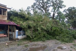 2 batang pohon mahoni besar yang diperkirakan berusia seratusan tahun di Lapangan Merdeka Kecamatan Natal tumbang dan menimpa Mess Natal milik Pemerintahan Kabupaten Mandailing Natal Prov. Sumatera Utara hingga ruang utama dan beberapa ruang lainnya hancur.