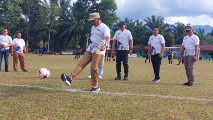 Bupati Mandailing Natal (Madina) HM Jafar Sukhairi Nasution resmi buka Turnament Sepakbola Bupati Madina Cup satu (1) tahun 2023 dengan total hadiah 60 juta bertempat dilapangan Konpi Senapan B Desa Parbangunan Kecamatan Panyabungan, senin (3/7).