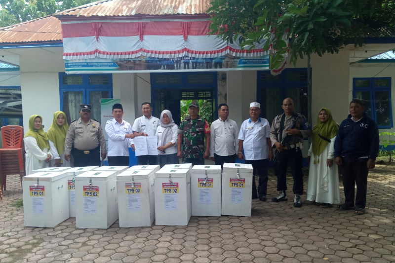 Penerimaan Logistik Pilkades Serentak tahun 2023 diterima di kantor camat disaksikan forkopincam ,TNI/POLRI. (Adnan Saleh)