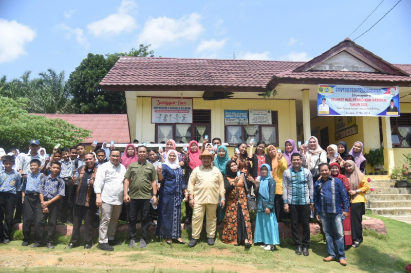 Bupati Tapanuli Selatan (Tapsel) Dolly Pasaribu berkunjung dan bertemu langsung dengan siswa-siswi SMPN 3 Garonggang, Kecamatan Angkola Selatan, Kamis (27/6/2024)