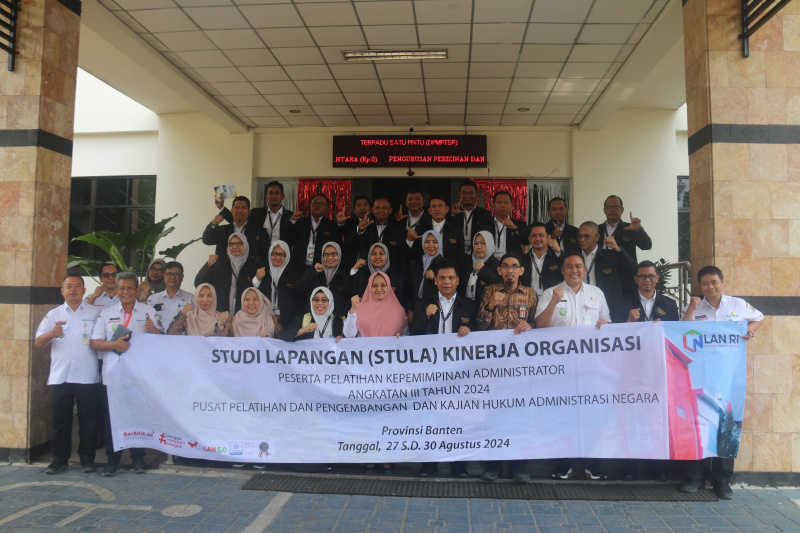 Sebanyak 45 peserta Pelatihan Kepemimpinan Administrator (PKA) Angkatan III Tahun 2024 melakukan studi lapangan (stula) di kedua instansi terkemuka yang ada di Provinsi Banten yakni, Kantor Badan Perencanaan Pembangunan Daerah (BAPPEDA) dan Kantor Dinas Penanaman Modal Pelayanan Terpadu Satu Pintu (DPMPTSP) yang diselenggarakan oleh Puslatbang KHAN LAN dan masing-masing peserta PKA dibagi dua kelompok yakni kelompok A dan B.
