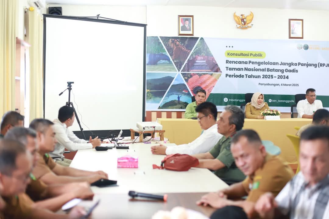 Hal itu disampaikan Wabup Atika saat membuka Konsultasi Publik RPJP TNBG Periode 2024-2034 di aula balai TNBG, Aek Galoga, Panyabungan, pada Selasa, 4 Maret 2025.