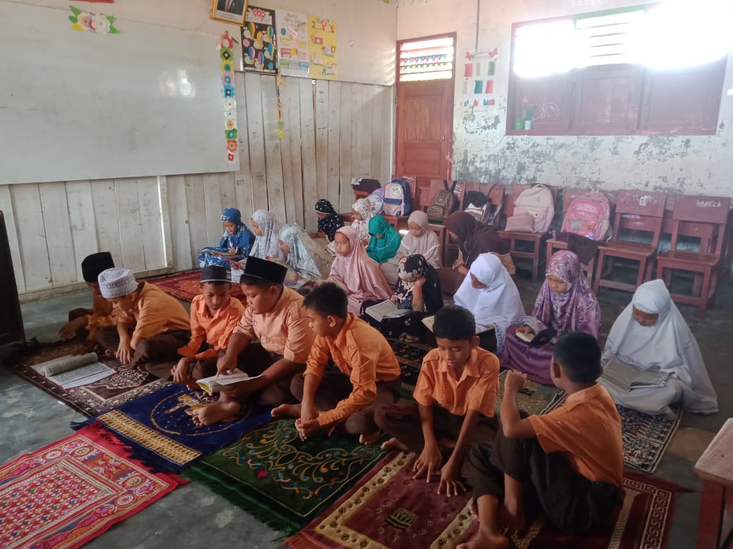 Madinapos.com MBG – Siswa -Siswi Sekolah Dasar Negeri 381 Desa Tabuyung,Kelas V Biasakan Sholat Dhuha dan Tadarus Al-Qur’an selama Bulan Suci Ramadhan Tahun 1446 Hijiriah/2025 Masehi,Desa Tabuyung,Kec.Muara Batang Gadis,Kab.Mandailing Natal, Jum’at (7/3/2025) pagi.