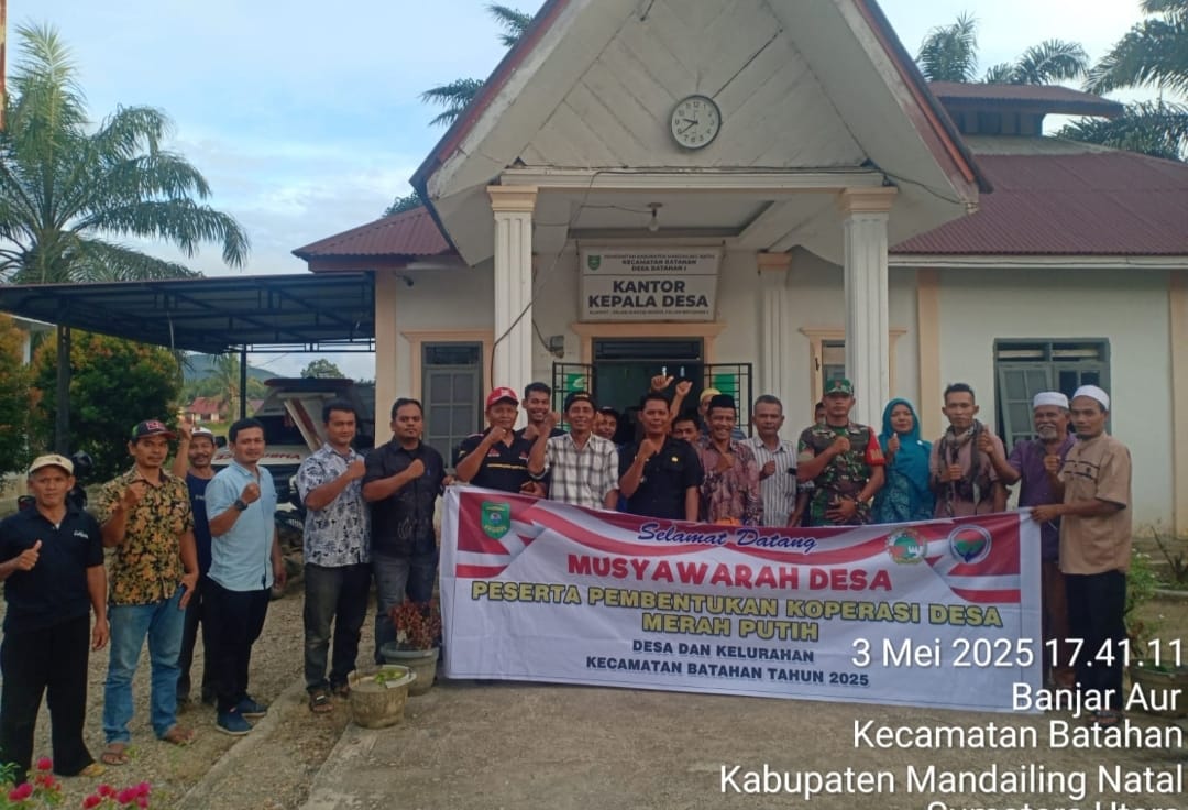 Madinapos.com, Batahan – Musyawarah Desa ( Musdes) Desa Batahan I bentuk Koperasi Merah Putih ( KMP) Desa Batahan I Kecamatan Batahan Kabupaten Mandailing Natal Provinsi Sumatera Utara Hari Sabtu Tanggal 03/05/2025 di Kantor Desa Batahan I