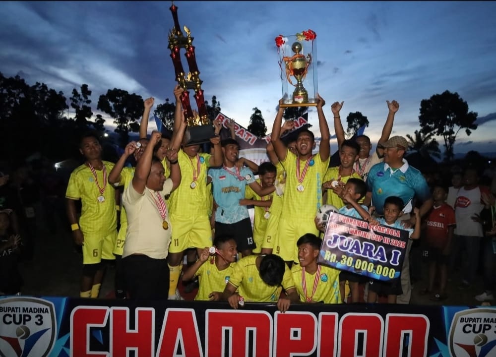 Pertandingan final berlangsung sengit dengan keunggulan Ayzkal FC 3-2 atas Panyabungan III. Turnamen ini diikuti 32 klub sepak bola dari berbagai wilayah di Madina. (Redaksi).