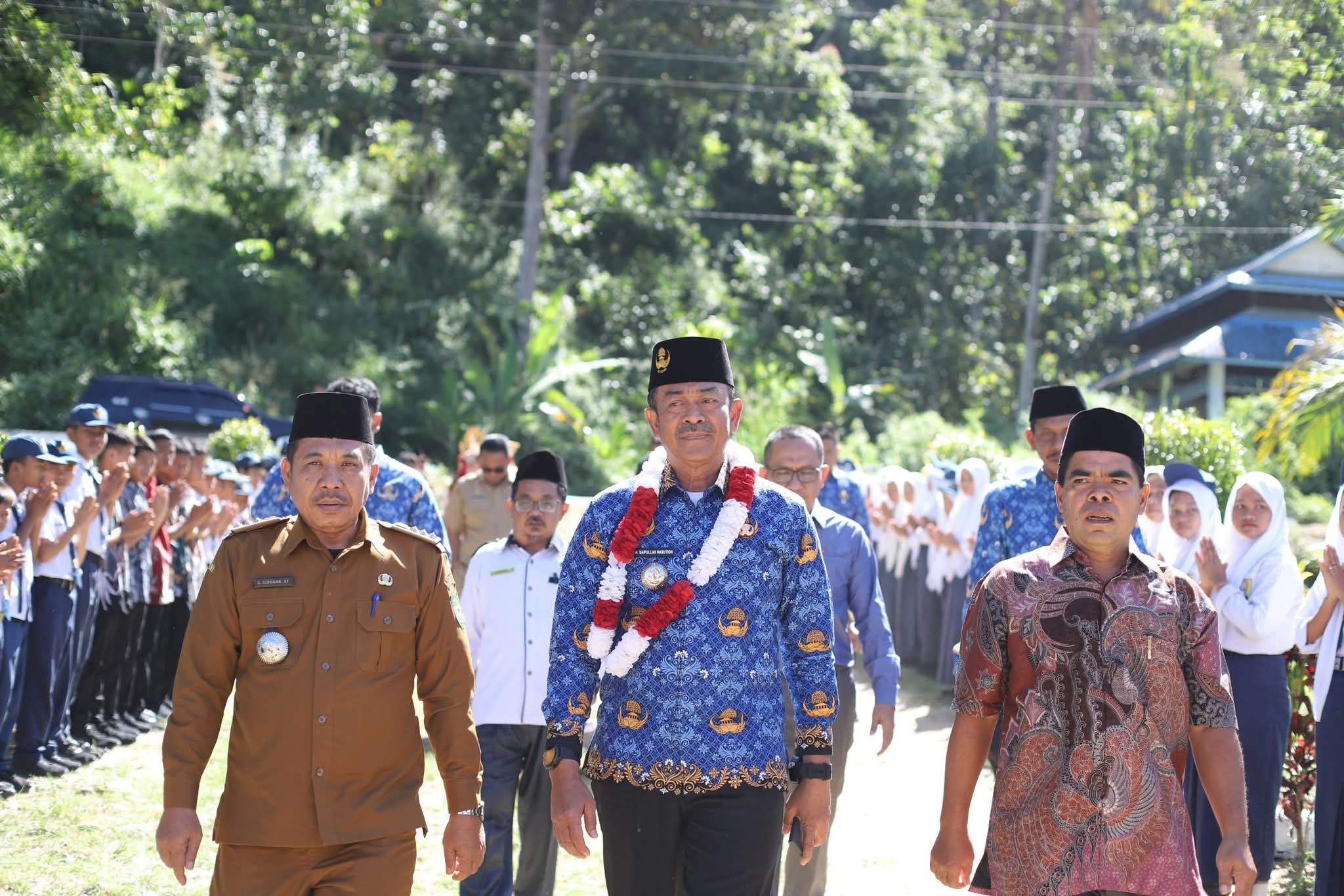 Sebelum ke SDN 126 Gunung Baringin, Bupati Saipullah terlebih dahulu mengunjungi SMP Negeri 1 Panyabungan Timur dalam rangka pelepasan siswa kelas IX.