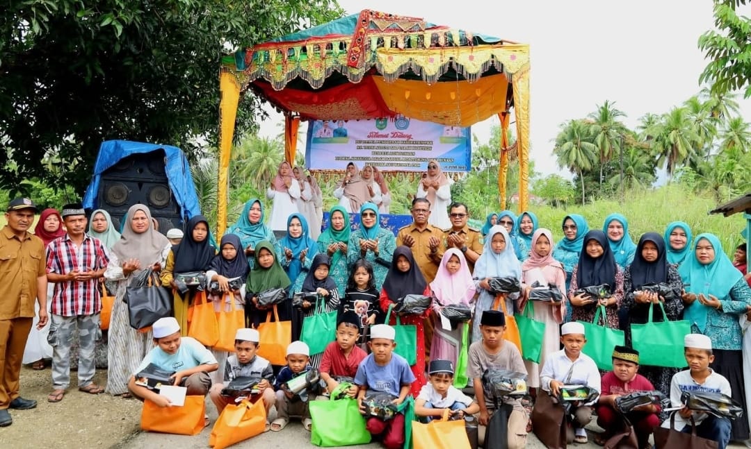 Dalam kesempatan tersebut, Ny. Yupri juga menyerahkan tali asih kepada anak yatim dan piatu yang ada di desa itu. Kemudian, istri Bupati H. Saipullah ini menabur 5.000 ekor bibit ikan beserta pakan.