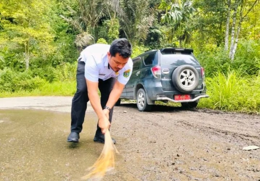 Sementara Kepala desa Sopotinjak pak Wali meminta kepada Pemkab Madina agar segara turun membersihkan jalan dari genangan minyak yang berceceran ini.