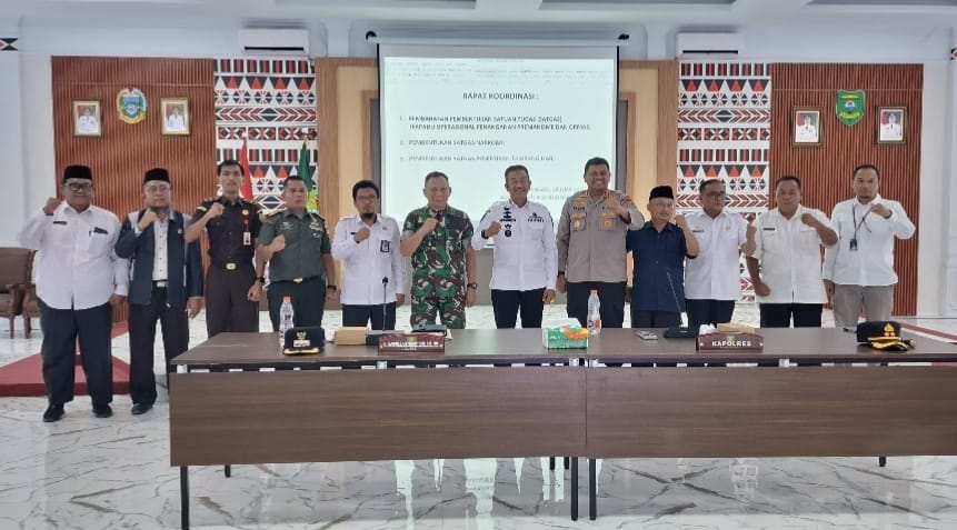 Rapat koordinasi yang diselenggarakan di aula kantor Bupati ini turut dihadiri oleh Bupati Madina, Kapolres, Pasi Intel mewakili Dandim, Pabung, BNNK, Sekda, Anggota DPRD, jajaran Asisten, sejumlah OPD dan Camat serta tokoh agama dan masyarakat.