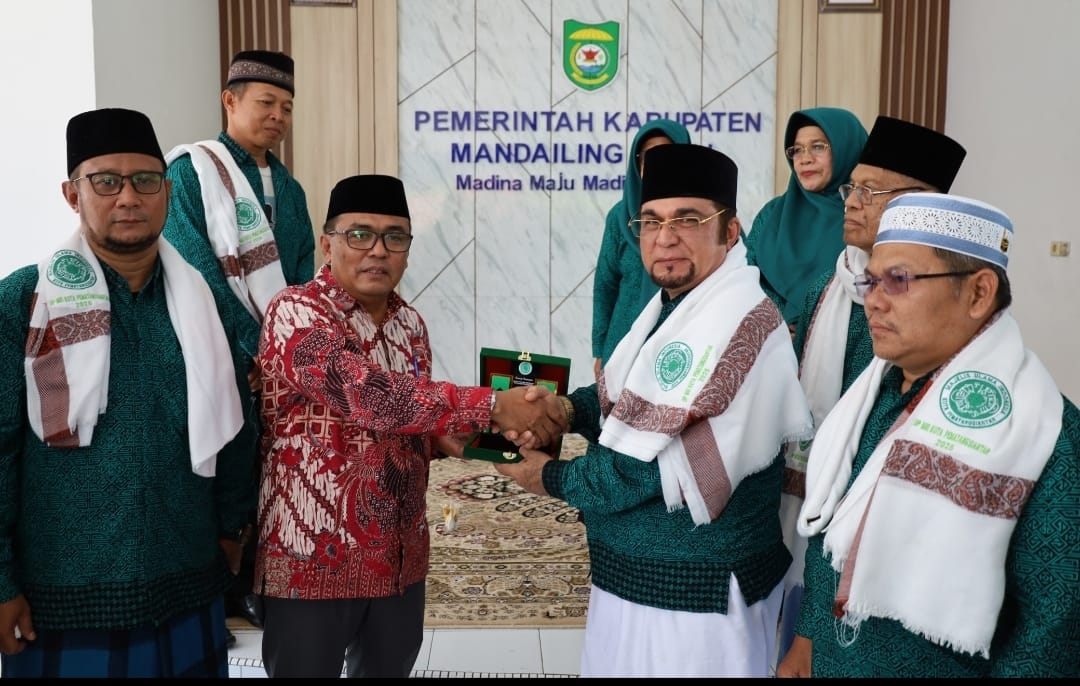 Selain Sekda Sahan, Ketua MUI dan jajaran serta tokoh masyarakat Madina juga turut serta menyambut Rombongan yang diketuai oleh H. Ahmad Ridwansyah Putra.