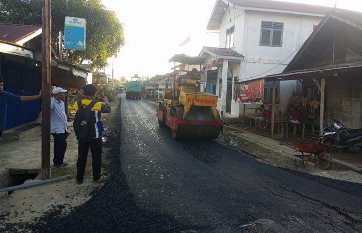 terlihat beberapa alat konstruksi bekerja melakukan pengaspalan yang terdiri dari 5 titik meliputi wilayah Kelurahan Pasar I, Kelurahan Pasar II, Desa Pasar III dan Desa Setia Karya.