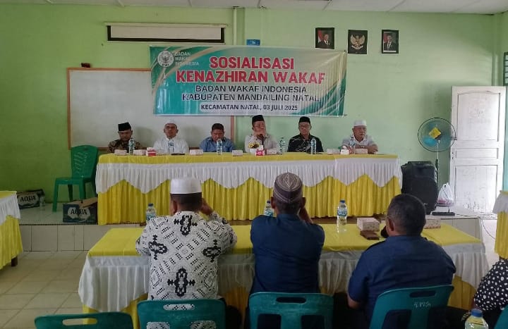 Madinapos.com, Natal – Badan Wakaf Indonesia (BWI) Kabupaten Mandailing Natal (Madina) menggelar Sosialisasi Kenazhiran Wakaf di Aula MAN 2 Madina, Pasar III Natal, Kecamatan Natal pada Kamis (3/7/2025).
