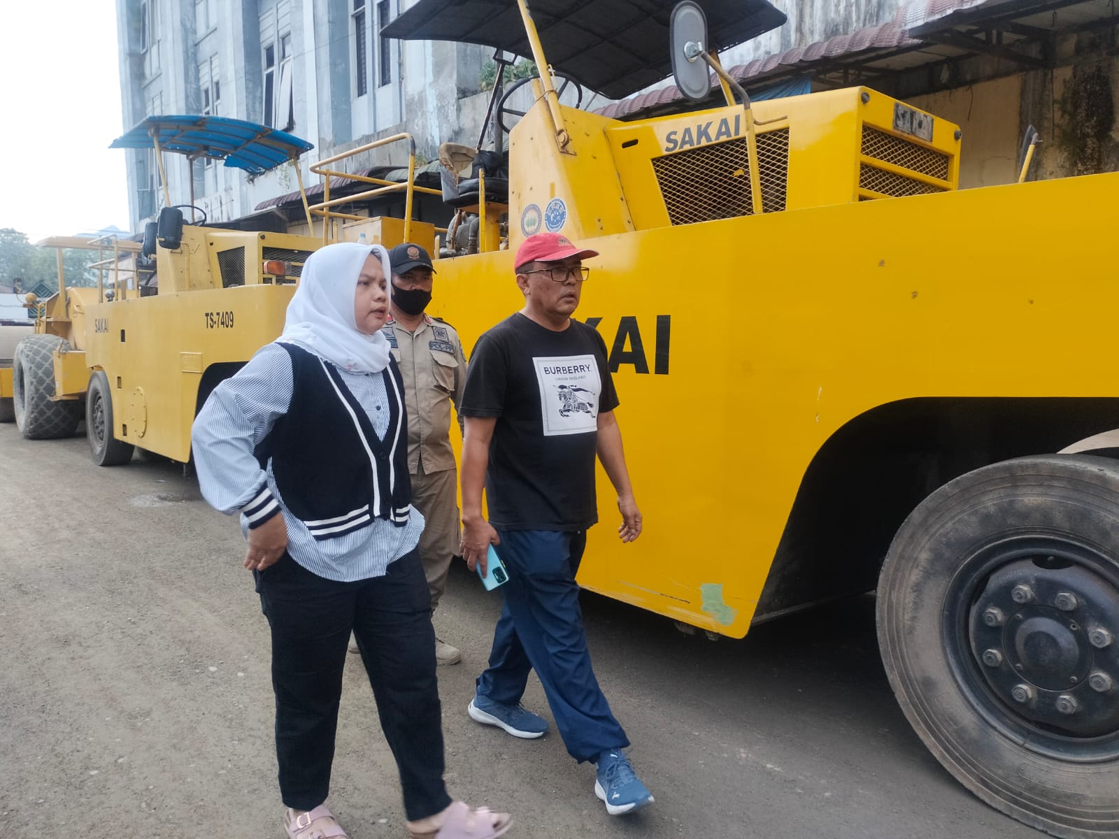 Madinapos.com, Panyabungan – Pj Sekda Mandailing Natal (Madina) Sahnan Pasaribu bersama Plt Kadis Pekerjaan Umum dan Penataan Ruang (PUPR) Elpiyanti Harahap meninjau langsung lokasi pengaspalan jalan keliling Pasar Lama, Kecamatan Panyabungan, Sabtu (5/7/2025).