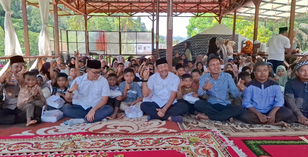 Sebelum ke Pakantan, Bupati terlebih dulu menunaikan Nazar janji kampanyenya dengan menyantuni anak yatim dari Kecamatan Muara Sipongi dan Pakantan di Desa Kotorojo.