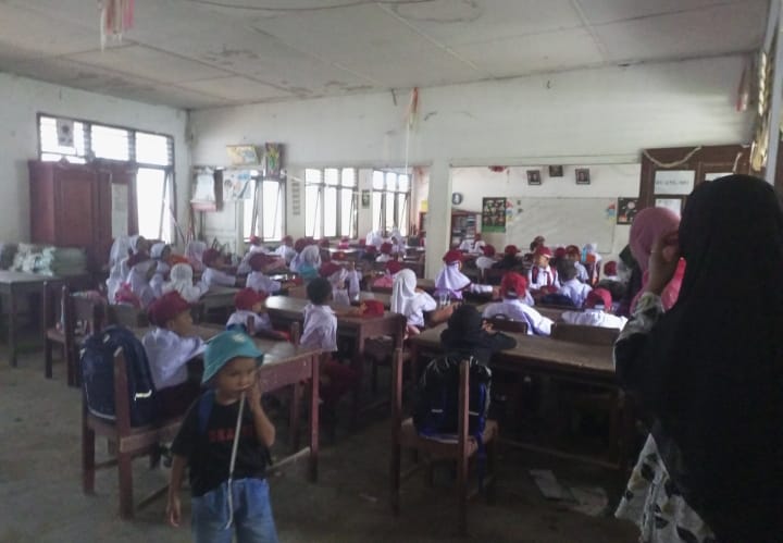 Seperti biasa para orang tua mendampingi anaknya ke sekolah untuk mendapatkan posisi tempat duduk yang bagus agar bisa dengan cepat dan mudah menyerap pelajaran yang diberikan oleh para guru pendidik.