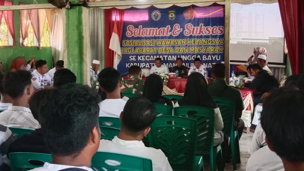 Kegiatan yang berlangsung di gedung MDA Dalan Lidang, kecamatan Lingga Bayu ini hadiri oleh camat Lingga Bayu,kepala desa, Dan pos Babinsa 16 ,babinsa Lingga Bayu,sekretaris desa, perangkat desa, dan BPD dari 17 desa yang ada di wilayah kecamatan Lingga Bayu Sosialisasi ini menghadirkan narasumber dari unsur TNI, Dan RamiL16 batang NataL Bapak Kapten Inf ZamriL.