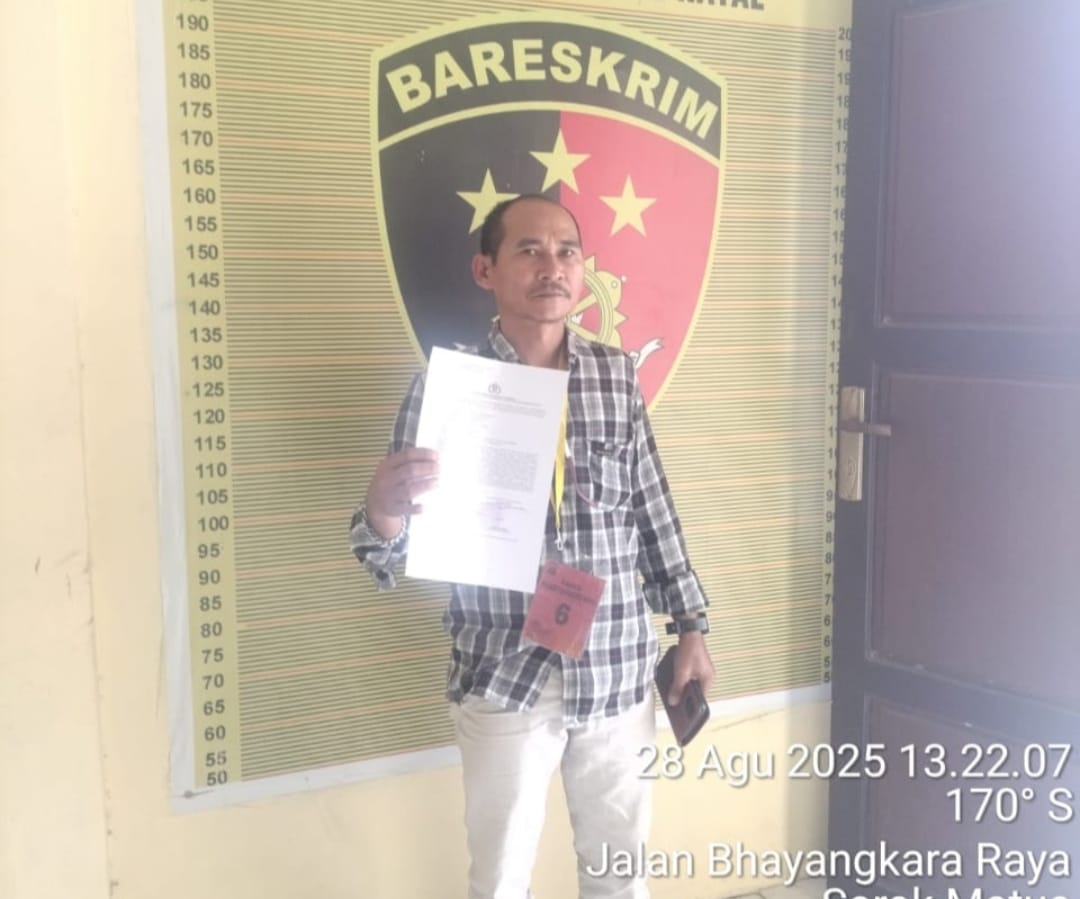 Wartawan Neraca News, Ahmad Hem Surbakti yang didampingi Ketua Forum Jurnalis dan Aktifis (FJA) se- Pantai Barat Madina, Afnan, S.H dan Pengawas FJA Mhd. Ali Hanafiah membuat laporan perihal pelarangan liputan itu di Polres Mandailing Natal (Madina) pada Kamis (28/8/2025).