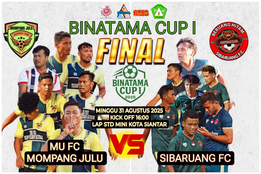 Madinapos.com, Panyabungan – Turnamen Sepakbola Binatama CUP 1 di Stadion Mini Kelurahan Kotasiantar, Kecamatan Panyabungan, Kabupaten Mandailing Natal (Madina) memasuki babak Gran Final pada Minggu sore, (31/8/2025) Pukul 16.00 WIB.