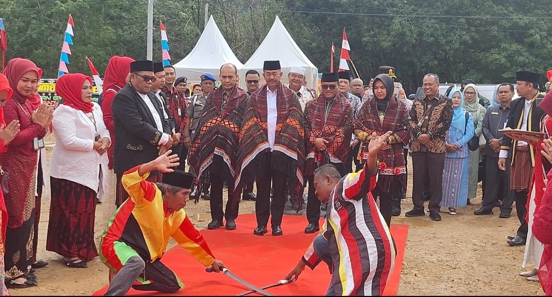 Terlihat kedatangan Bupati dan Wabup serta pejabat lainnya disambut dengan diulosi dengan iringan lantunan Gordang Sambilan khas Mandailing. (Redaksi).