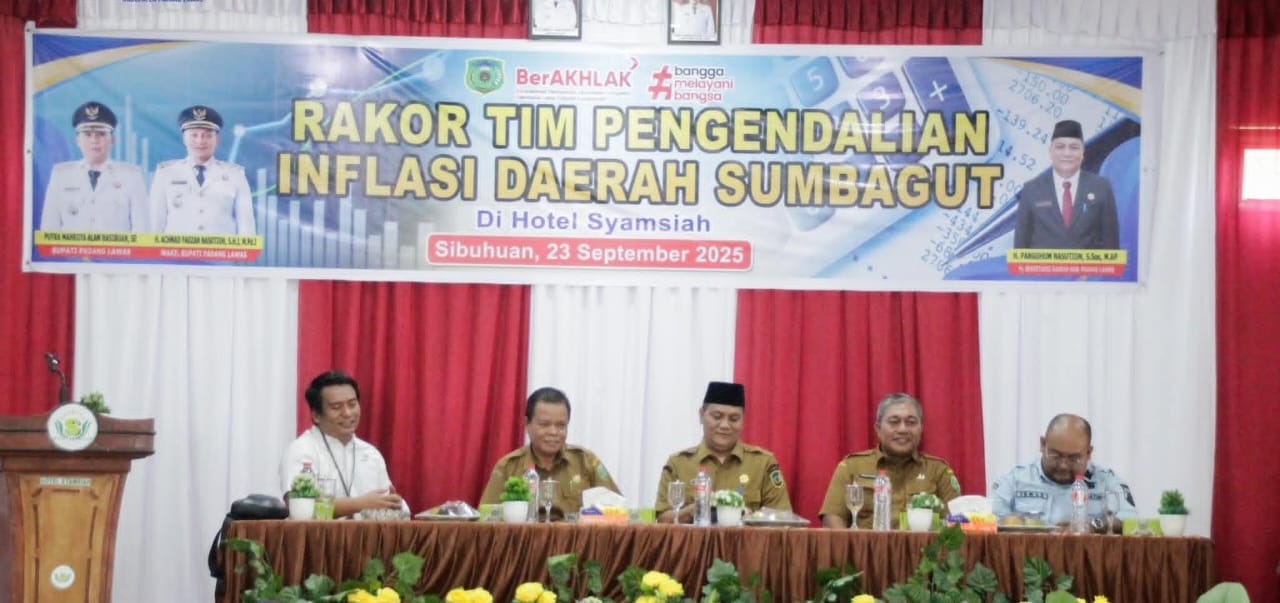 Madinapos.com, Padang Lawas –Bupati Padang Lawas Putra Mahkota Alam Hasibuan SE dalam hal ini diwakili oleh Pj Sekretaris Daerah Panguhum Nasution S.Sos, M.AP secara resmi membuka acara Rakor Tim Pengendalian Inflasi Daerah Sumbagut di aula Hotel Syamsiah Kabupaten Padang Lawas. Selasa 23/09/2025.