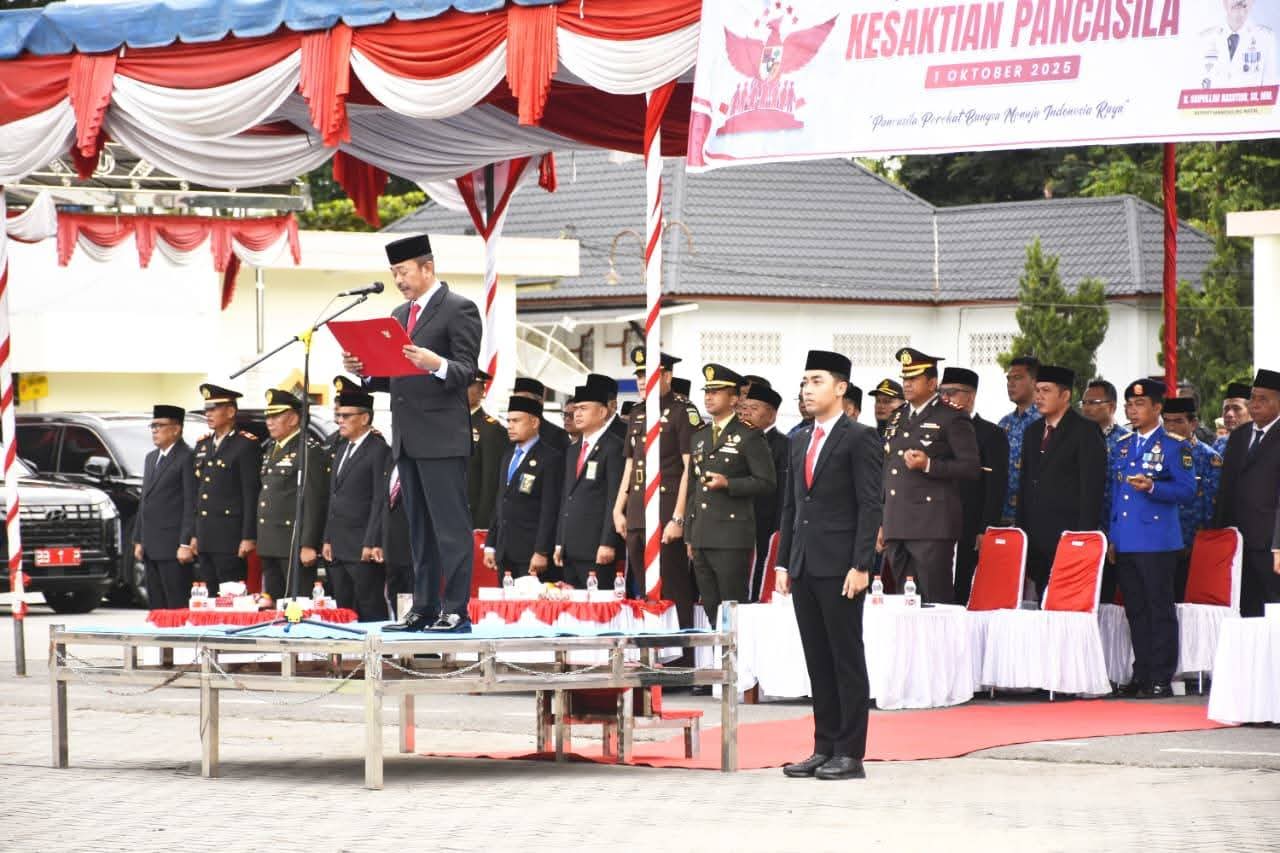 Hal itu disampaikan bupati saat memimpin upacara peringatan Hari Kesaktian Pancasila di pelataran Masjid Agung Nur Alan Nur Aek Godang, Desa Parbangunan, Panyabungan, pada Rabu, 1 Oktober 2025.