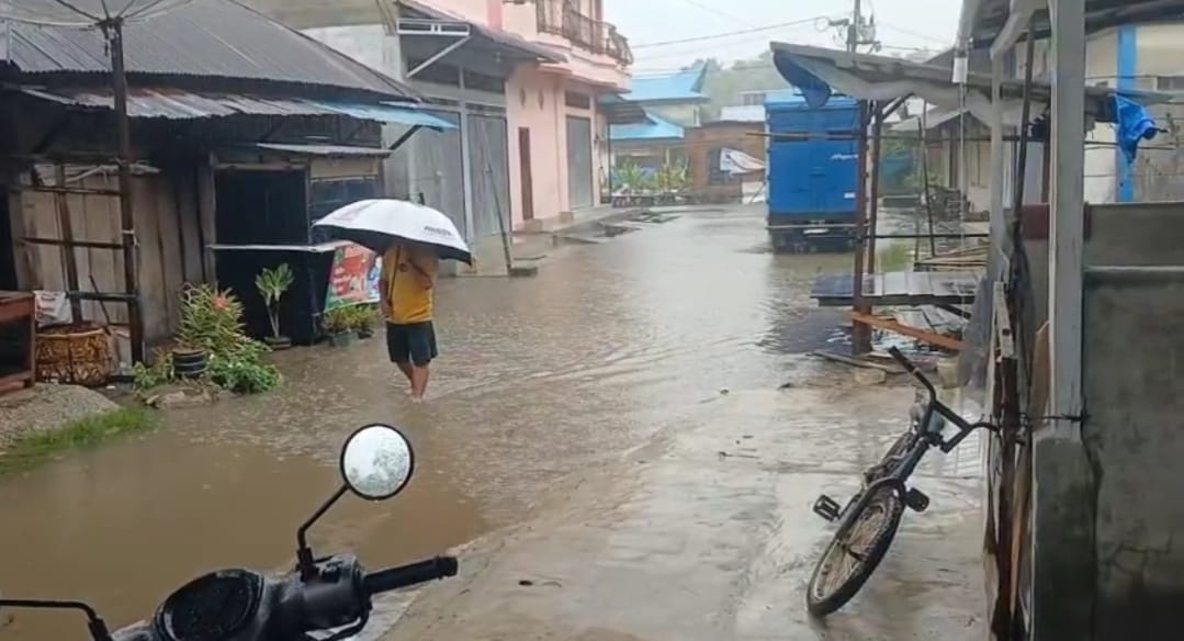 Madinapos.com, Natal – Usai diguyur hujan satu hari semalam di Wilayah Natal sekitar, kini warga masyarakat di Lingkungan Jalan ni Diponegoro Kelurahan Pasar II Natal Kecamatan Natal Kabupaten Mandailing Natal sangat resah karena jalanan dan pekarangan rumah warga mengalami banjir.