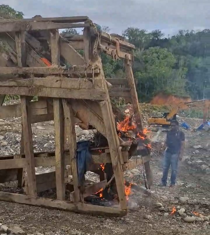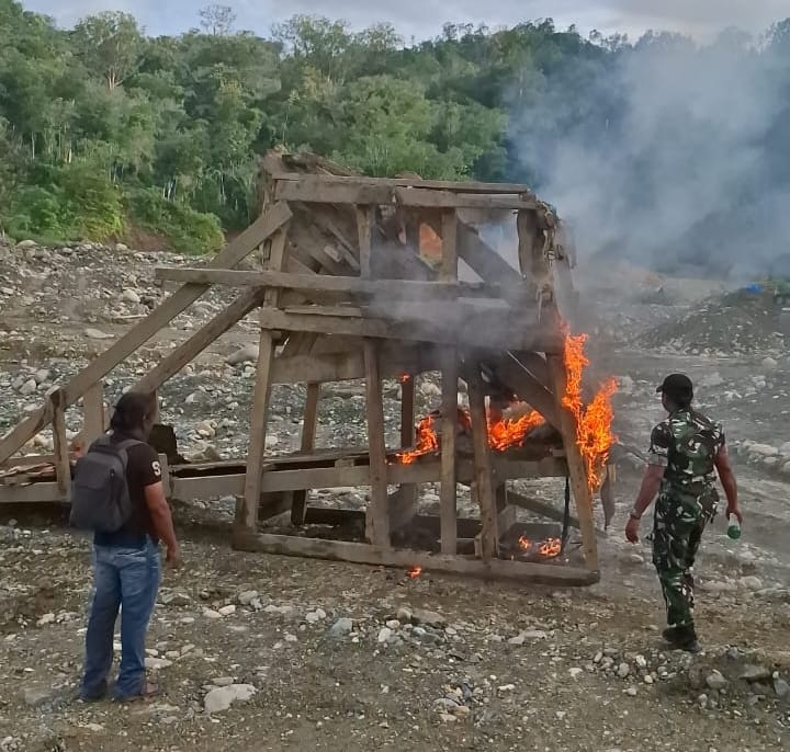 Tak hanya itu, personel juga turut membakar beberapa peralatan penyaringan emas di lokasi. Hal itu dilakukan agar para pelaku tidak lagi kembali melakukan aktivitas penambangan.