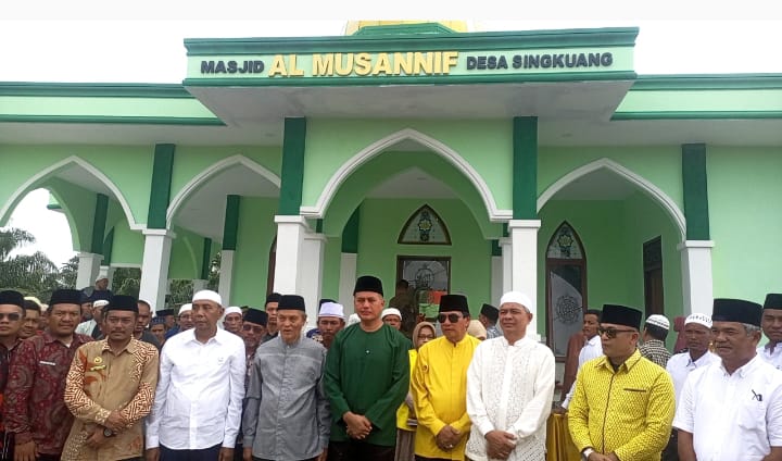 Setelah penandatanganan prasasti, acara diakhiri dengan gunting pita dan foto bersama di depan Masjid Al-Musannif Desa Singkuang I, Kecamatan Muara Batang Gadis, Kabupaten Mandailing Natal.
