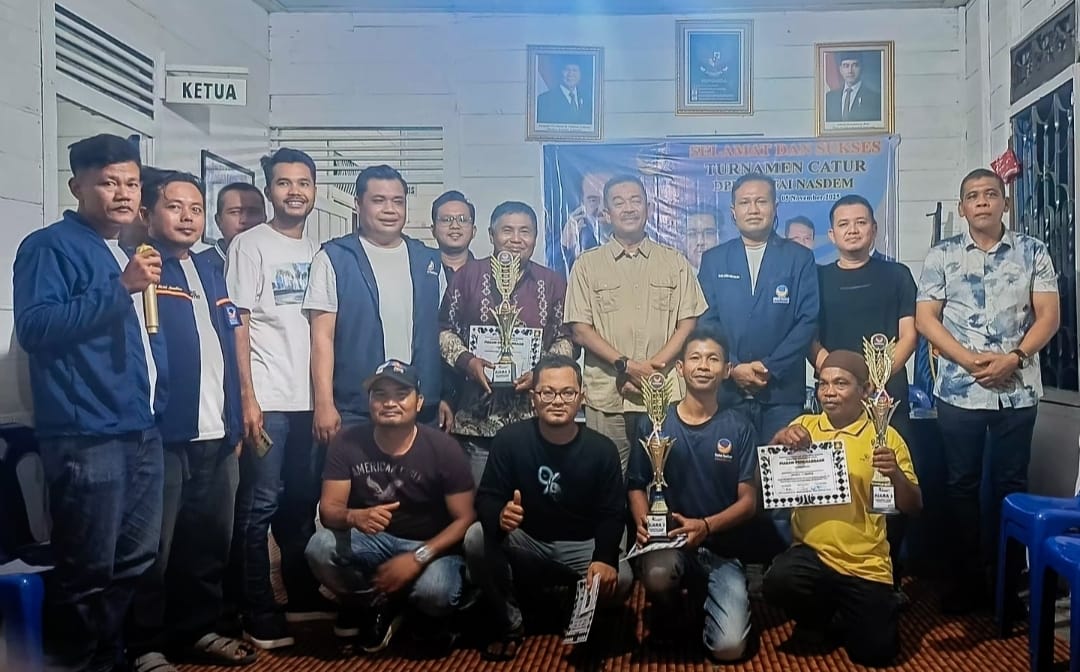 Madinapos.com, Panyabungan – Bupati Mandailing Natal (Madina) H. Saipullah Nasution secara resmi menutup Turnamen Catur DPD Partai Nasional Demokrat (NasDem) di Kantor Partai NasDem Madina, Kelurahan Dalan Lidang, Kecamatan Panyabungan, pada Rabu malam, 5 November 2025.