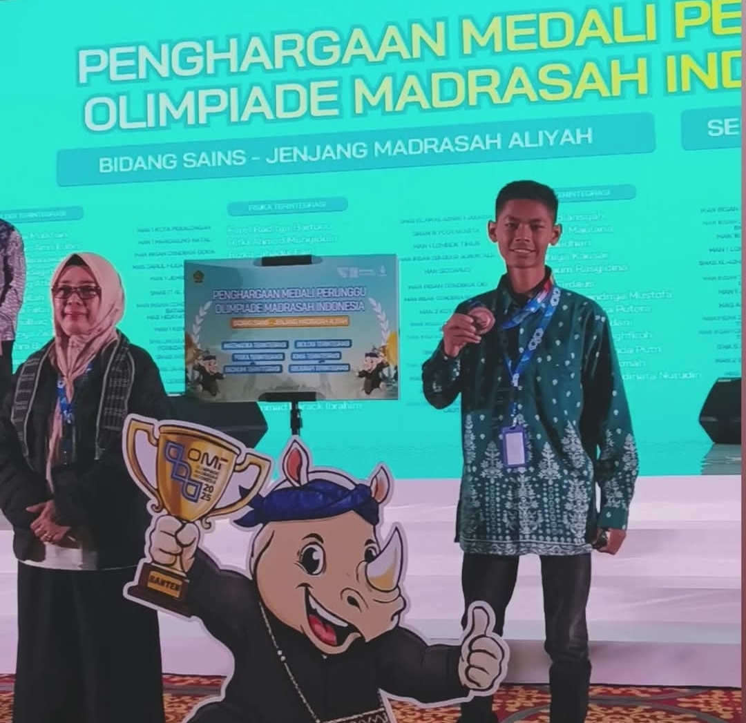 Madinapos.com, Banten – Daffa Raehan Amri Lubis kelas XI-C yang merupakan siswa dari Madrasah Aliyah Negeri (MAN) 1 Mandailing Natal (Madina) rebut medali perunggu dalam ajang Olimpiade Madrasah Indonesia (OMI) tahun 2025 bidang studi biologi tingkat nasional.