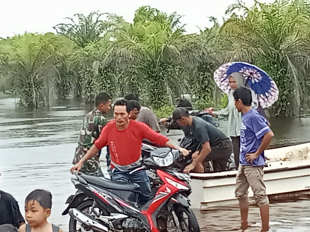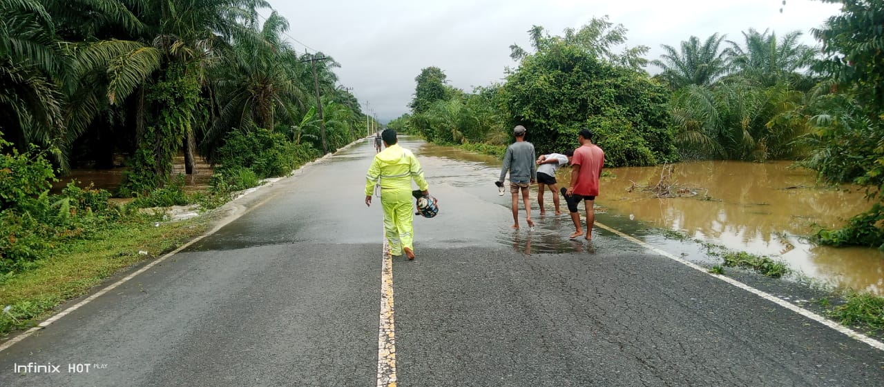Sampai Saat ini genangan air mencapai setinggi 1 Meter dan panjang genangan air sekitar 500 Meter, sementara jalan Tidak dapat dilalui kenderaan R2, R4 dan R6 .