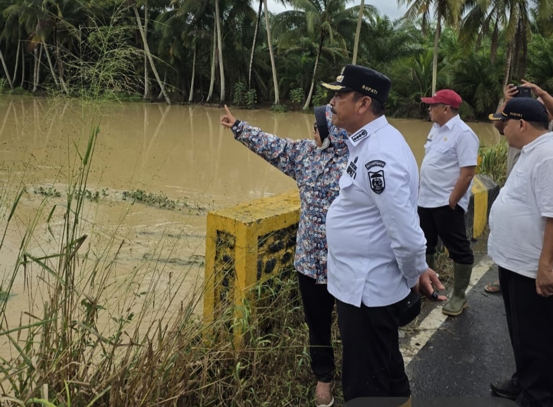Madinapos.com, Siabu – Bupati Mandailing Natal (Madina) bersama rombongan Pemerintah Kabupaten meninjau tanggul jebol yang merendam persawahan warga seluas 250 hektar di Desa Tangga Bosi Kecamatan Siabu.