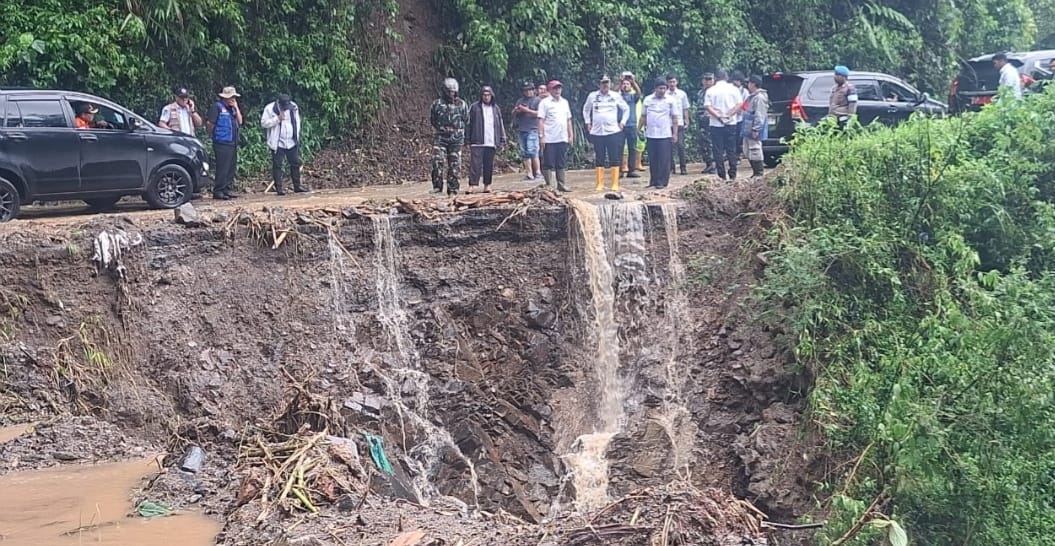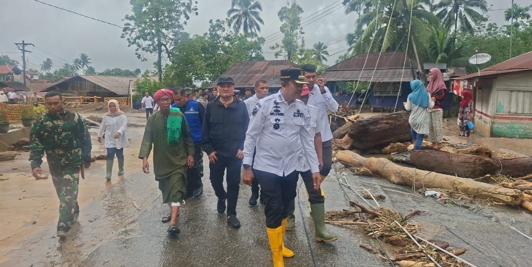 Dilanjutkan, rombongan ini menuju titik lokasi banjir dan longsoran yang terjadi di daerah jembatan bosi dan wilayah Aek inumon arah Sopotinjak. (Redaksi).
