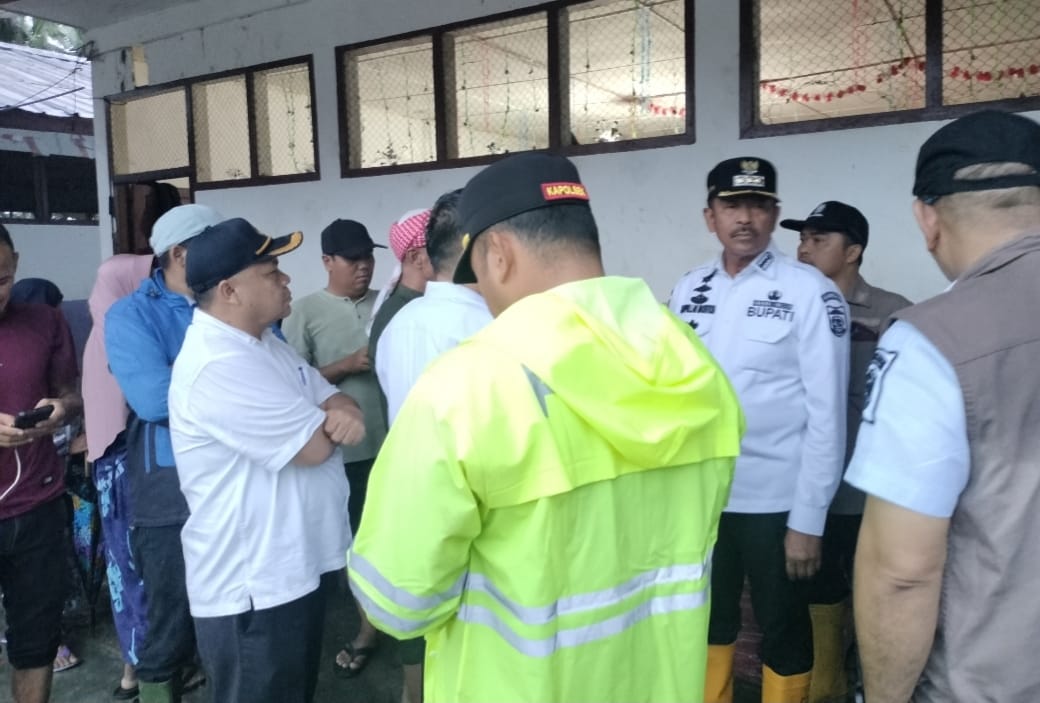 Madinapos.com, Siabu – Bupati Mandailing Natal (Madina) H. Saipullah Nasution bersama rombongan meninjau kondisi masyarakat yang terdampak bencana banjir di Desa Muara Batang Angkola, Kecamatan Siabu, pada Rabu sore, 26 November 2025.