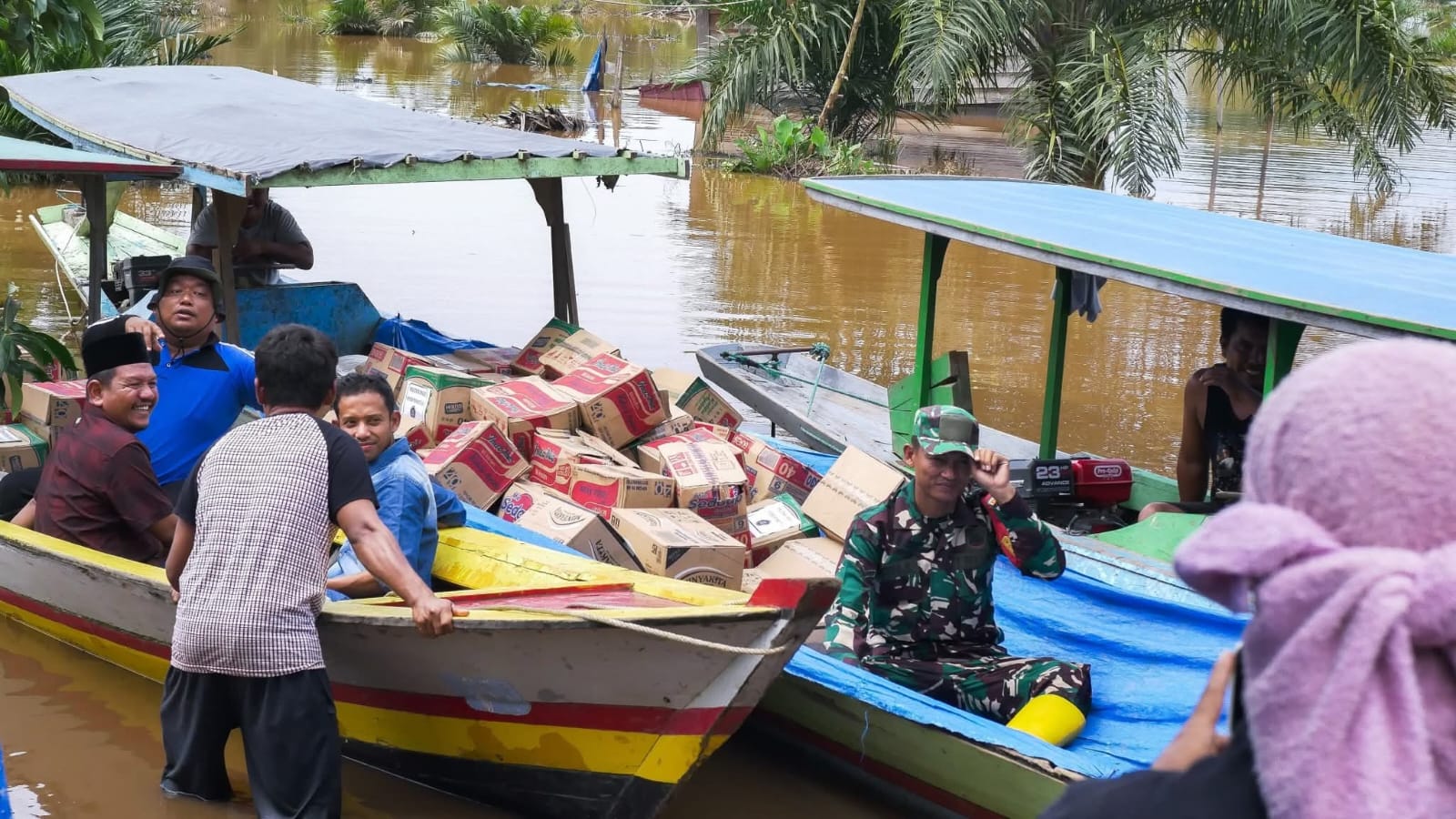 Di Dusun Hamborlang, Sekcam Muara Batang Gadis, Kapolsek, Danramil, sudah menyiapkan 6 unit Sampan untuk membawa bantuan sembako, obat-obatan, dan rombongan menuju Singkuang 1 dan anak desanya Trans Singkuang.