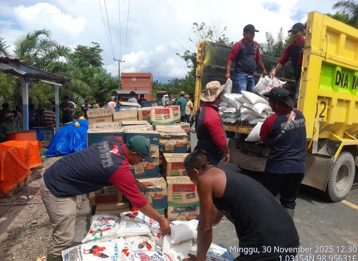 ‎Madinapos.com, MBG – Perusahaan yang bergerak dibidang budidaya perkebunan kelapa sawit PT. Dinamika Inti Sentosa (PT.DIS) melalui Yayasan Artha Graha Peduli  (AGP Foundation) menyerahkan sejumlah bantuan bahan pangan kepada korban banjir di wilayah Kecamatan Muara Batang Gadis (MBG) pada Minggu (30/11/2025).