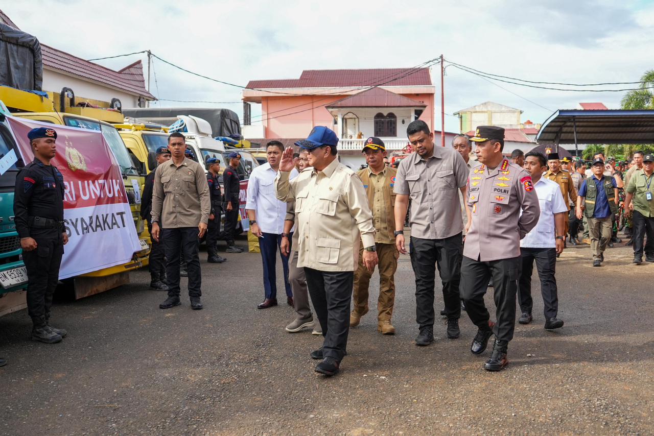 Di lokasi bencana, Presiden Prabowo didampingi Kapolda Sumut, Irjen. Pol. Whisnu Hermawan Februanto, S.I.K., M.H., Gubernur Sumut Bobby Nasution dan Pangdam Mayjen TNI Rio Firdianto meninjau langsung kerusakan dan mendengarkan laporan terkini terkait situasi darurat, termasuk kendala distribusi bantuan. Ia mengakui bahwa banyak jalur utama masih terputus, sehingga menghambat pergerakan tim di lapangan.