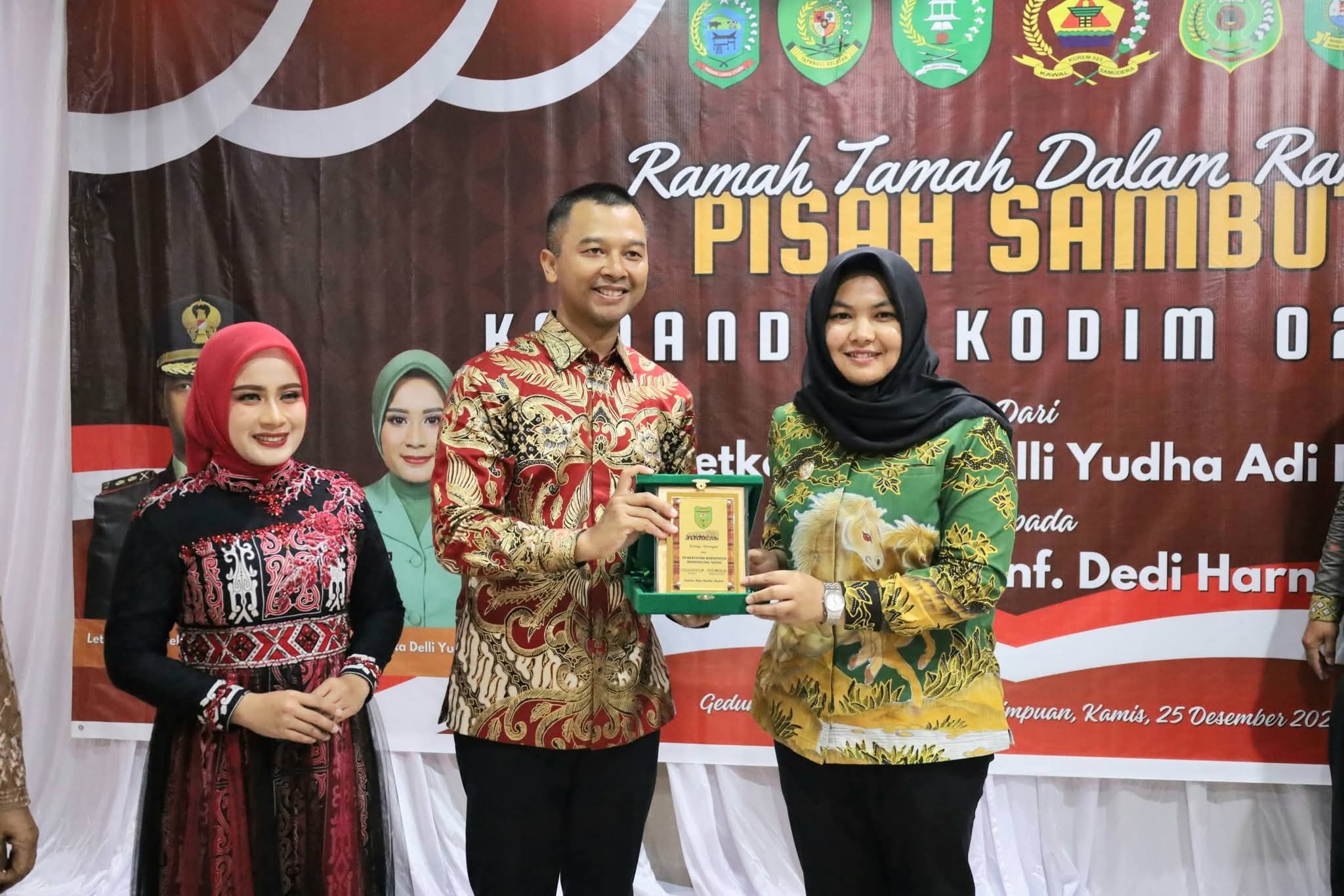 Madinapos.com, Tapsel – Bupati Mandailing Natal (Madina) H Saipullah Nasution dan Wabup Atika Azmi Utammi Nasution hadiri pisah sambut Komandan Kodim (Dandim) 0212 Tapsel dari Letkol Arm Delli Yuda Adi Nur Cahyo SE,.MM kepada Letkol INF Dedi Harnoto.