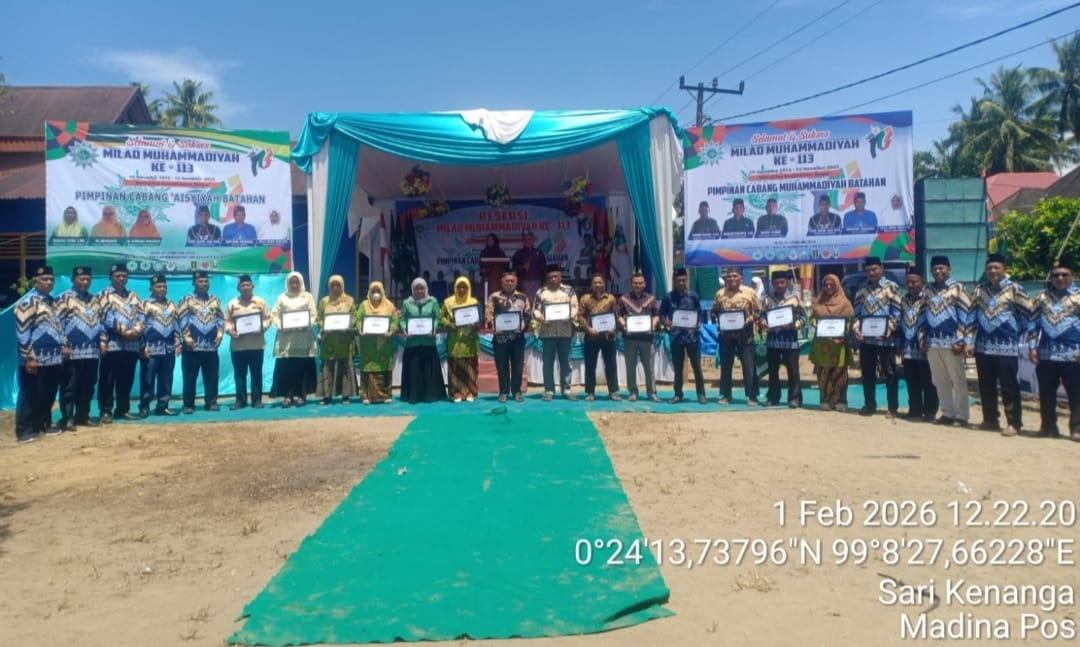 Madinapos.com, Batahan – Pimpinan Cabang Muhammadiyah ( PCM ) Batahan gelar rasepsi milad Muhammadiyah Ke – 113 dengan tema Memajukan Kesejahteraan Bangsa pada Hari Minggu Tanggal 01/02/26 di Depan Mesjid Taqwa Muhammadiyah Desa Sari Kenanga Batahan Kecamatan Batahan Kabupaten Mandailing Natal.